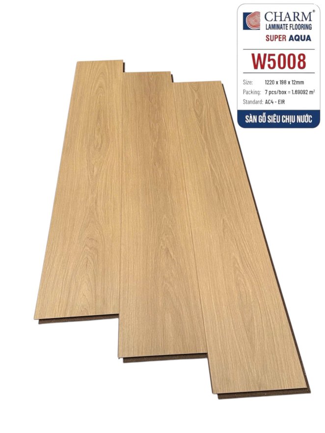 Sàn gỗ Charm Super Aqua sàn gỗ siêu chịu nước Báo giá Sàn gỗ charm wood W5010 W5005 W5012 W5015 W5019 W5011 W5008 W5002 EIR sần theo vân dày 12mm bao nhiêu tiền 1m2 tại Hà Nội hoài đức đan phượng thanh oai ứng hòa long biên đông anh sóc sơn gia lâm thanh xuân cầu giấy hoành bồ ninh giang